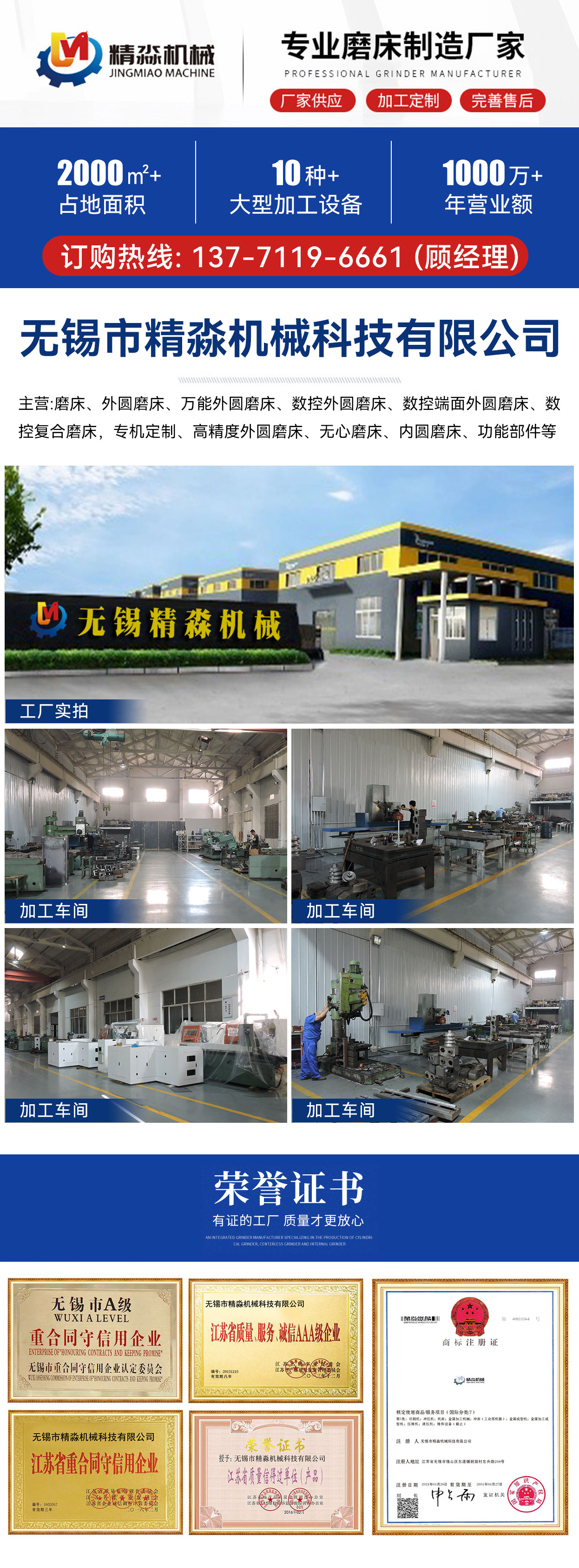 歡迎您訪問無錫市精淼機械科技有限公司官網!本公司主要產品有:磨床,外圓磨床,萬能外圓磨床,數控外圓磨床,數控端面外圓磨床,數控復合磨床,專機定制,高精度外圓磨床 !